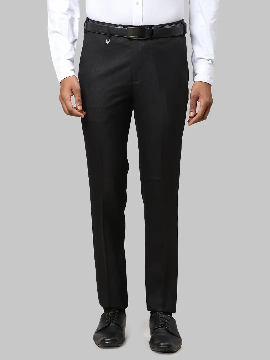 2. Men Black Super Slim Fit Structure Polyester Blend Trouser
