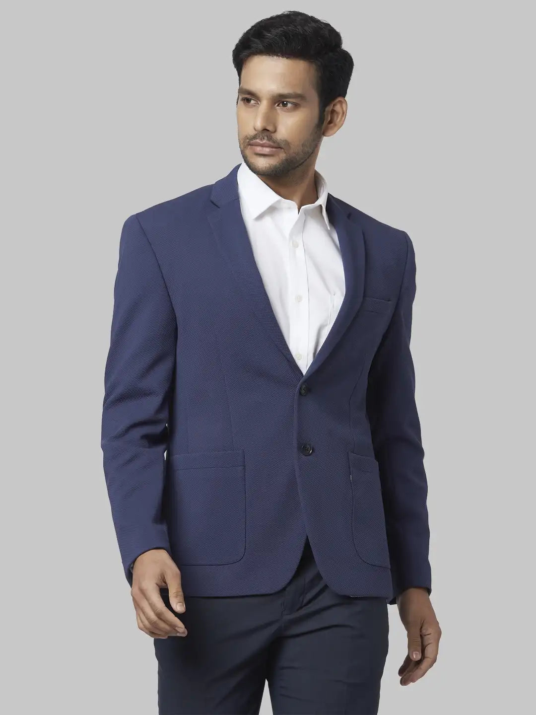 2. Men Blue Slim Fit Structure Polyester Blend Jackets