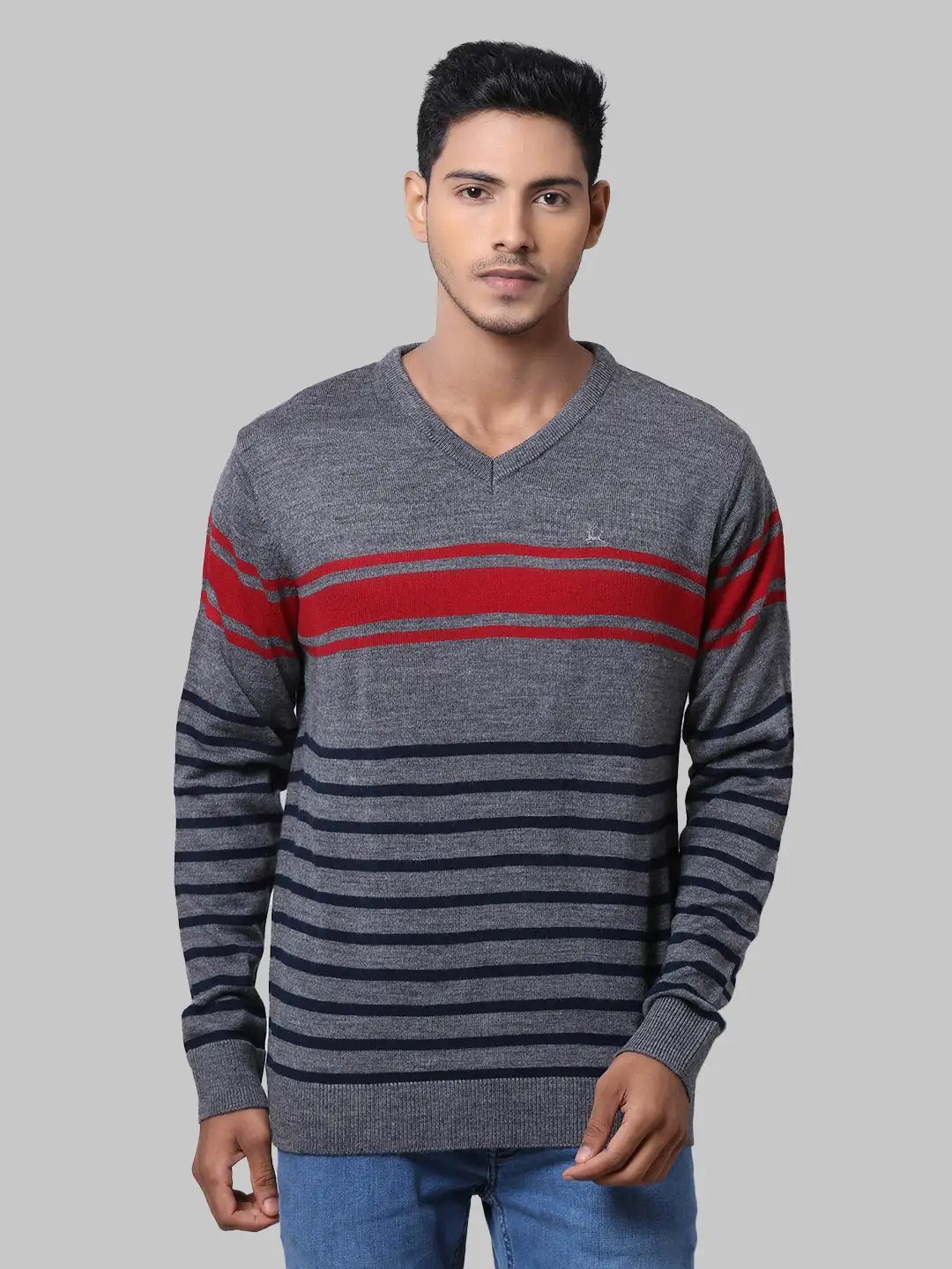 2. Men Grey Yarn Dyed Acrylic Full Sleeve Sweaters
