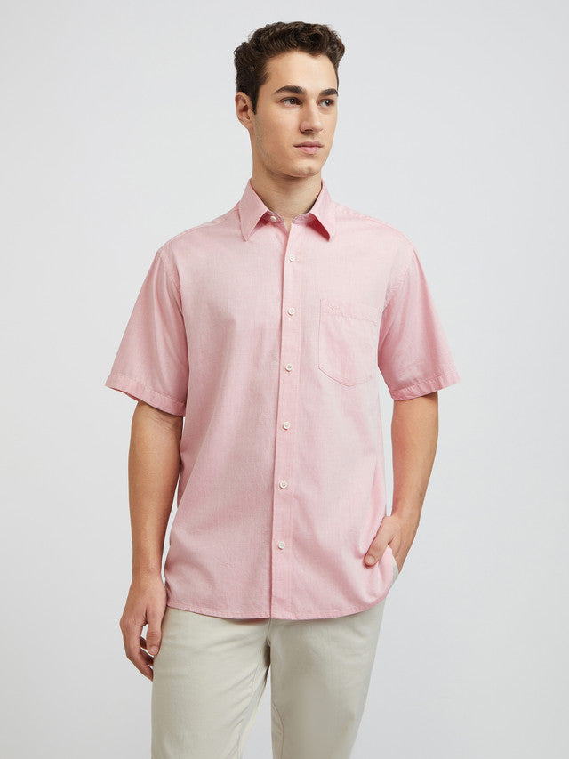 Colorplus Men Red Classic Fit Solid Cotton Half Sleeve Shirts