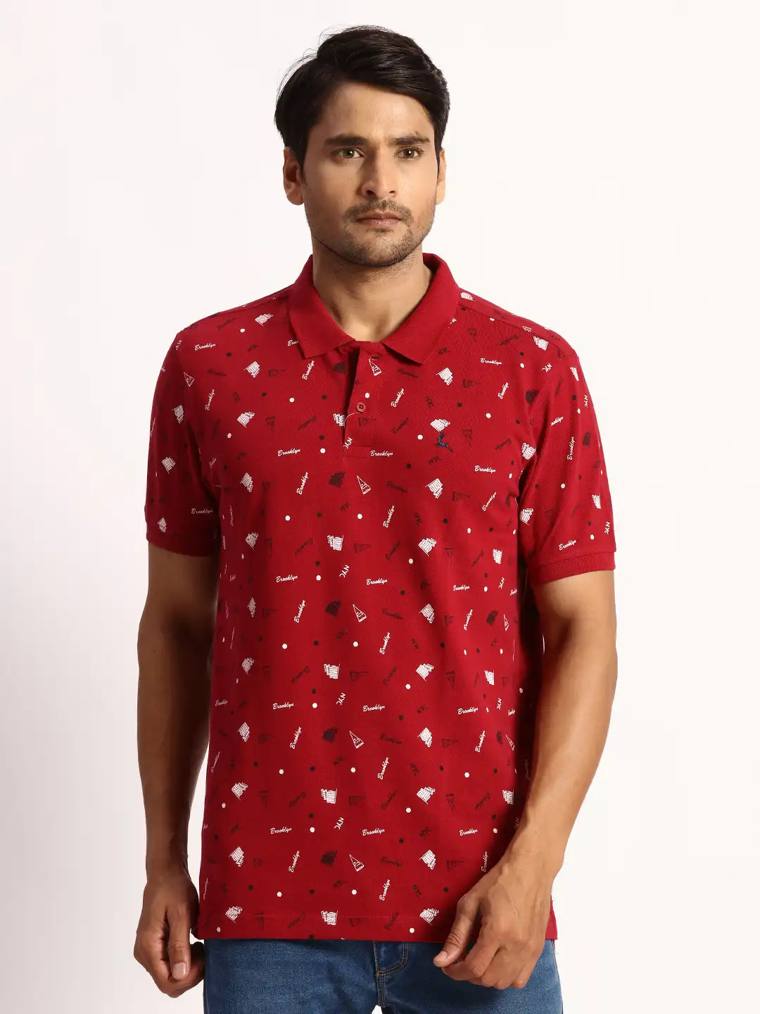 2. Parx Men Maroon Print Regular Fit Cotton Polo Neck T-Shirt