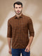 Parx Men Brown Checks Slim Fit Cotton Casual Shirt