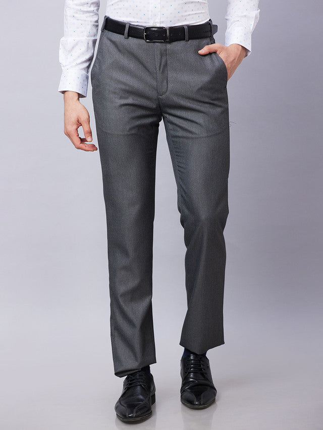 Raymond Grey Solid Slim Fit Polyester Blend Trouser