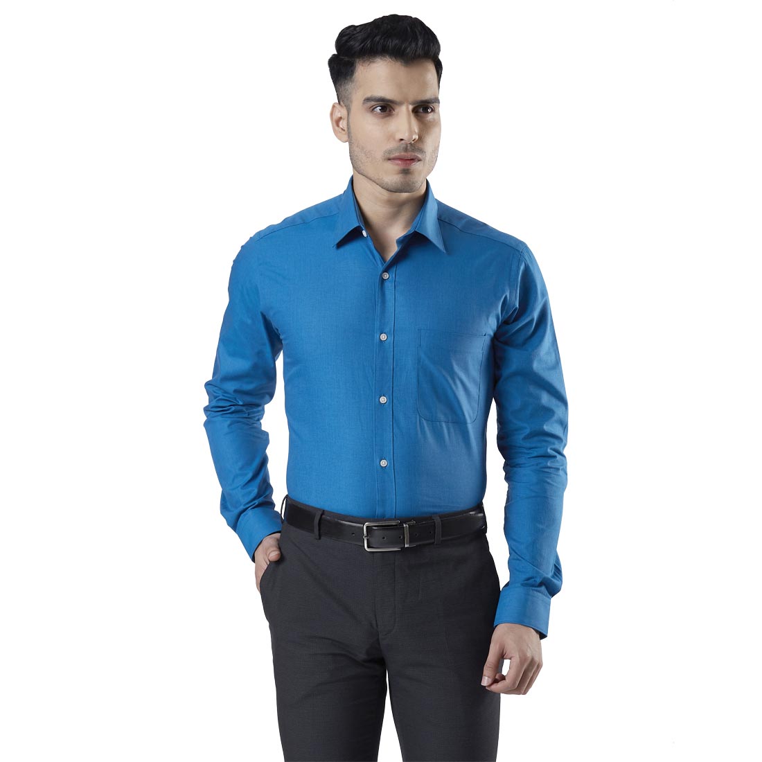 2. Raymond Men Blue Fil-A-Fil Slim Fit Cotton Shirts