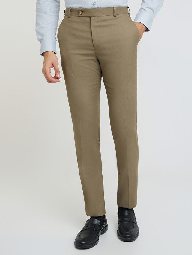 Raymond Men Fawn Slim Fit Solid Polyester Trousers