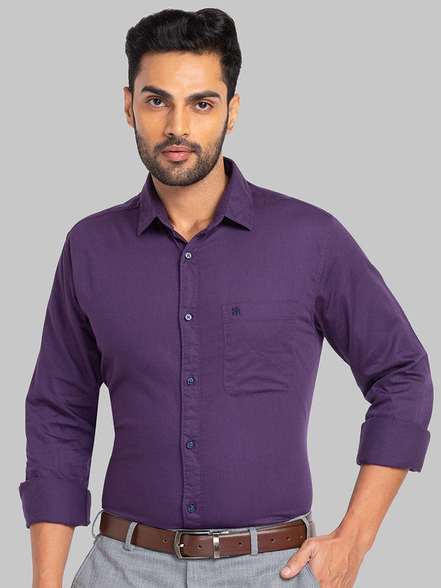 2. Raymond Purple Solid Slim Fit Cotton Casual Shirt